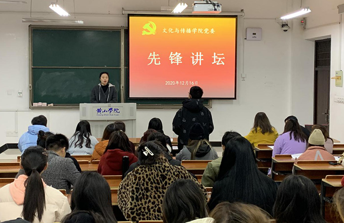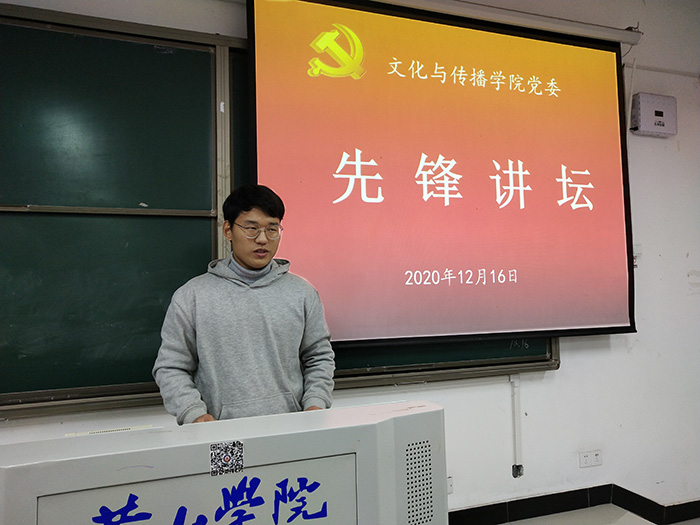 12月16日晚,太阳成集团122ccvip在文渊楼1204教室举办“先锋讲坛”系列讲座,员工党员、国家奖学金获得者、17广编郭春晖同学和员工党员、校团委员工兼职副书记、18广编刘雨婷同学分别就个人在专业技能和员工工作领域的先进事迹作宣讲报告。讲座由公司党委书记汪家庚主持。员工第一党支部书记闫朋辉、第二党支部书记李妍、全体党员员工和入党积极分子实践团成员参加。