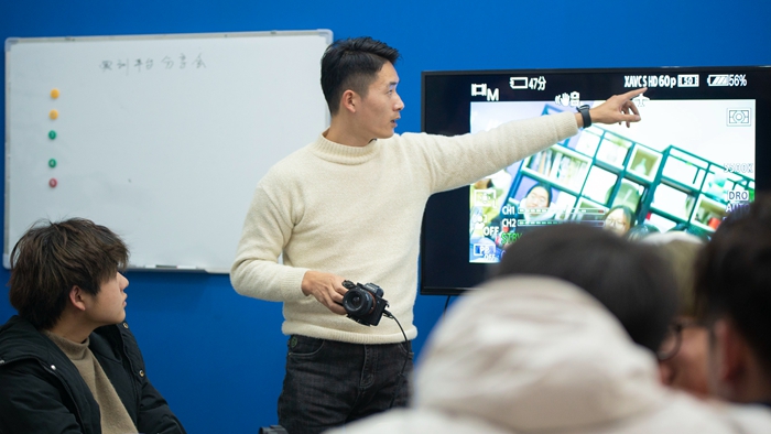 分享会上,五维电影工作室创始人刘杰通过宣传片的前期文案创作,中期设备选择和拍摄注意事项,以及后期影视剪辑三个部分向同学们讲述了一部宣传片的制作过程。每步操作流程都用具体案例为同学们做讲解,深入浅出、生动有趣的讲解让同学们受益匪浅。