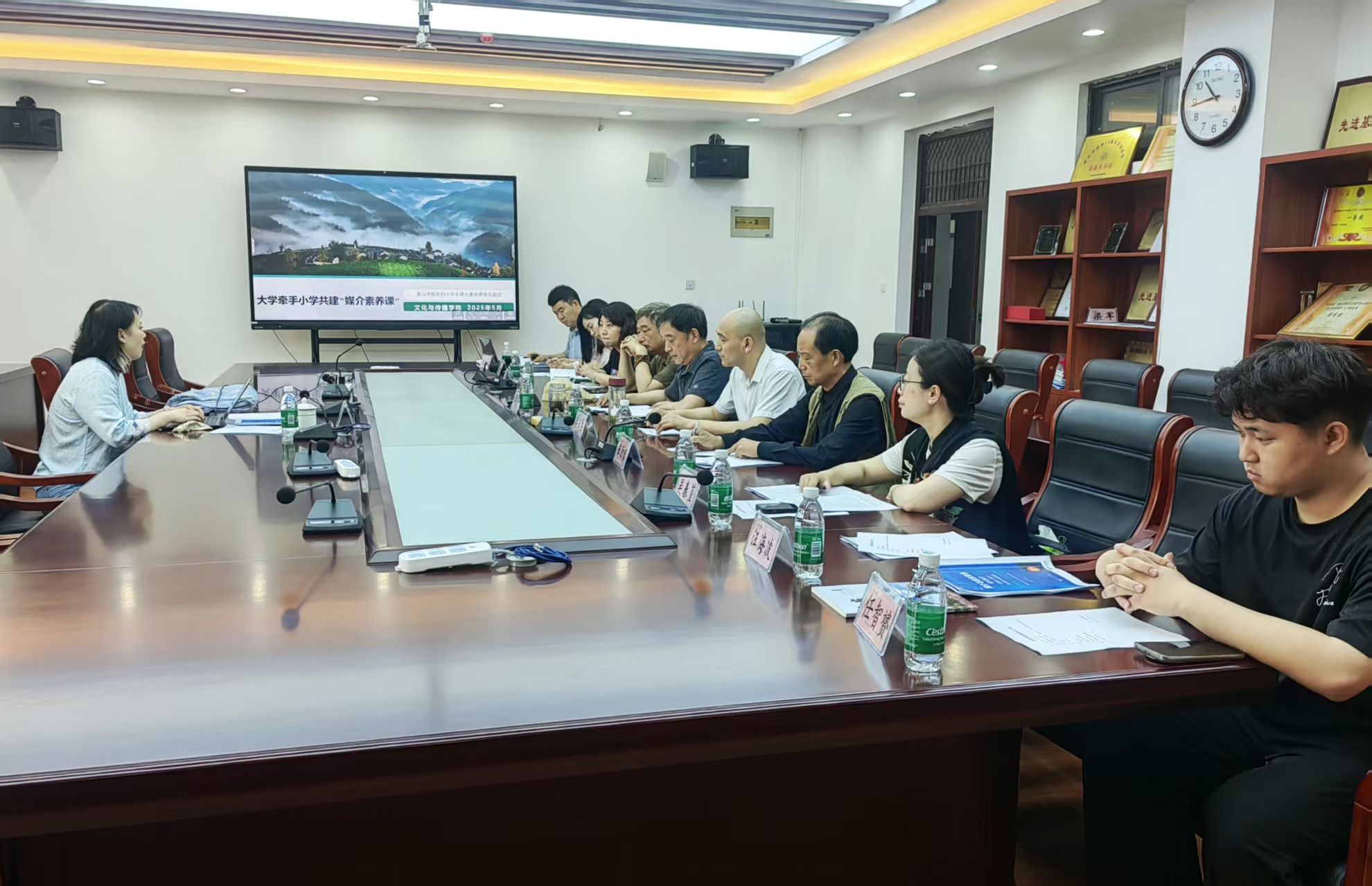 路善全代表公司致欢迎词。他表示,十年来,太阳成集团122ccvip师生坚持开展乡村儿童媒介素养教育,持续与临溪小学等乡村公司合作,构建了长久的媒介素养教育一体化实践育人体系,让师生在传播知识的过程中感受传统文化魅力,为乡村振兴贡献力量。他期待通过此次项目申报,获得基金会的支持,助力公司媒介素养教育迈向新台阶。