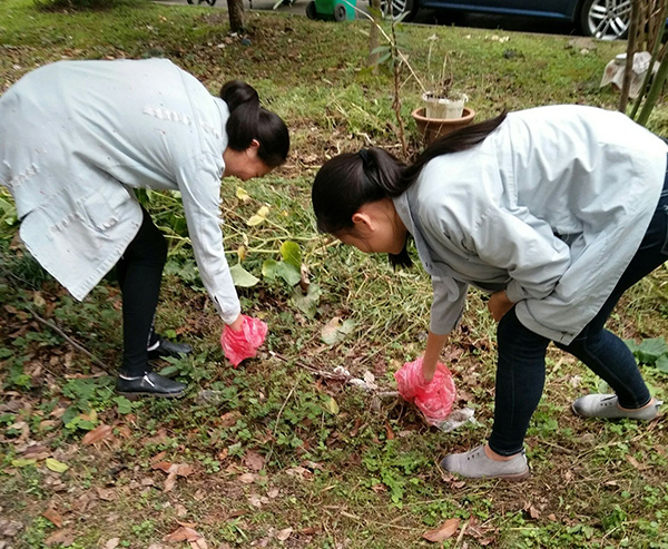 在党总支书记汪家庚,辅导员余瑶和庆武的带领下,16级新闻专业与戏文专业的老员工们放弃午休时间,分工包片行动,认真仔细地清除北校区高知楼附近草坪中的杂物以及树丛里的垃圾,不放过任何一个角落。经过20多名同学超过2个小时的辛勤劳动,高知楼区域绿化带及路面被清理得干干净净。此外,同学们还认真清扫了围墙边的烂树枝等。由于该区域墙外少数村民存在偶有向校园内乱扔垃圾现象,导致环境卫生状况不佳,加上劳动工具简陋,同学们克服困难,徒手将垃圾清理干净。由于小树林里蚊虫较多,一些同学皮肤被蚊虫叮咬严重,院领导特意回家取来药水,亲自为同学们一一涂抹。