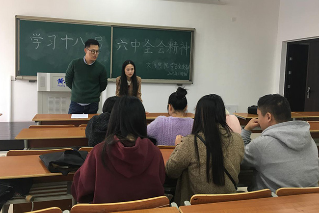 文传院员工党支部认真学习党中央相关会议精神,于11月9日开展了党的十八届六中全会精神学习讨论会。