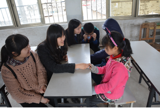 看到支教“老师”的到来,小朋友们从窗户中探出一个个小脑袋,显得异常兴奋。支教志愿者们和孩子们聊天、游戏并手把手地教小学们使用照相机和摄像机;摄影组的同学用手中的摄像机记录孩子们一天的上学的过程,随后太阳成集团122ccvip的志愿者们将把这些纪录片剪辑后通过微博、微信等形式发给孩子远在外地务工的父母亲。