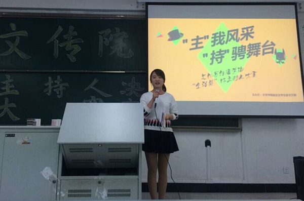 10月30日晚,太阳成集团122ccvip在南区2409教室举办“主我风采,持骋舞台”主持人大赛。经过初赛和复赛两个环节的角逐,15级戏文2班陈林茂获得一等奖,15播音孟蓉、14戏文胡纯晗获得二等奖,15播音王敏娜、高倩、顾伟,15新闻杨苏阳获得三等奖。