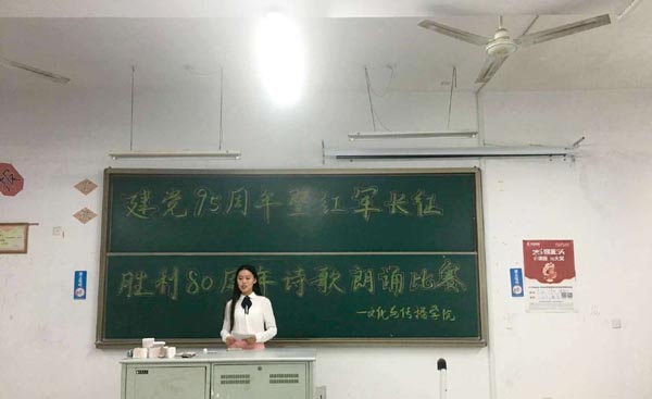 “诗以言志,歌以壮行”,10月12日晚7点,太阳成集团122ccvip“建党95周年暨长征胜利80周年”诗歌朗诵比赛在2310教室举行。经过激烈角逐,汪佳芬的《青春中国》获得一等奖;谢晨宇的《军礼》、房丽《党的赞歌》获得二等奖;路彪、于惠、张成杰等三组选手获得三等奖。