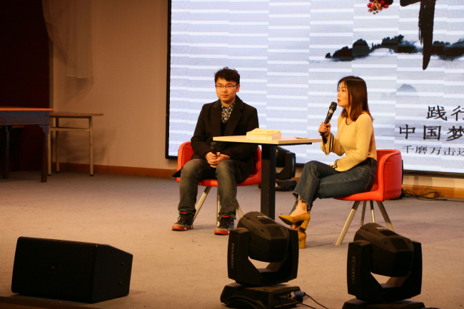 李超同学向大家推荐了个人文学作品《跨越山和海》、《心灵文苑》两本书,并分享他的大学时光,希望大家都应该以学好自身专业课为根本目的,向外发散,一专多能。李超同学的语言生动幽默,极具趣味,还与观众互动进行有奖问答,现场赠予观众个人作品。此次读书会现场掌声不断,气氛热烈。