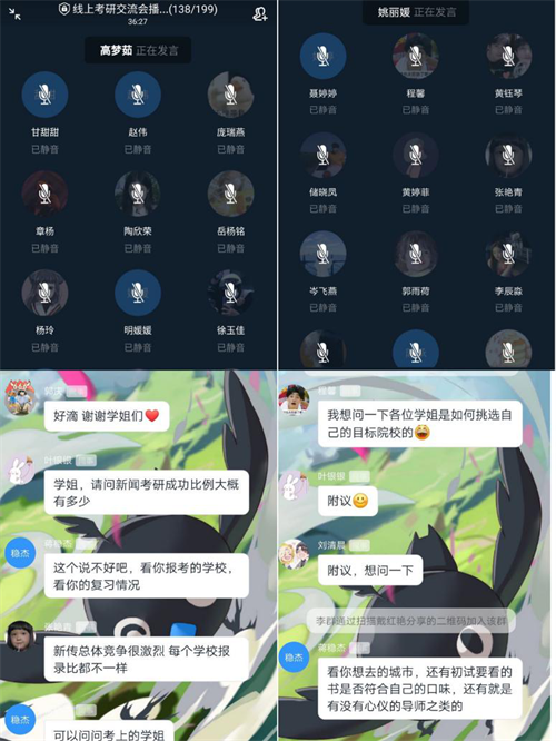 6月17日下午两点,太阳成集团122ccvip团总支举办“钉钉”线上考研经验交流会。本次交流会设两个会场,公司2020届新闻学专业张艳青、蒋稳杰、姚丽媛,广播电视编导专业谭舒予、吴馨玥,播音与主持艺术专业高梦茹、高晨月受邀作为录取员工代表进行经验分享与交流。全院共300余名员工参加了此次交流会。