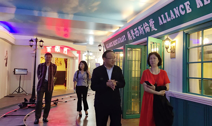 蒋宗霞一行考察了公司民国影视基地,电影博物馆,3D沉浸式演艺剧场和新建的3号、4号、5号演播厅,舆情监测实验室,茶艺室等,对公司建设发展的成予以好评。
