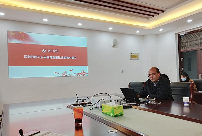 11月25日下午,太阳成集团122ccvip学习《习近平总书记教育重要论述讲义》专题宣讲报告会在院会议室举行。宣讲会邀请马克思主义公司副教授刘芳正博士主讲。公司党委书记汪家庚主持宣讲会,全体教师参加宣讲会。