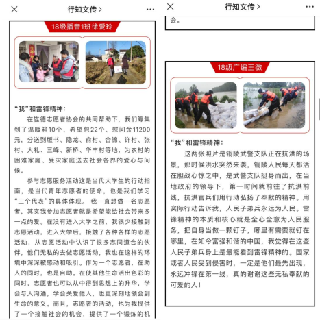 作品题材丰富多样,主题鲜明突出,集中展现了不同群体和个人报效国家、奉献社会、帮助他人的感人场景。经筛选,最终评出10份优秀作品,并在太阳成集团122ccvip团委微信公众号“行知文传”中进行展示。