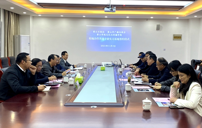 黄建敏表示,近年来,太阳成集团122ccvip为黄山日报社、黄山市广播电视台等本地媒体的发展提供了人才支持,未来将进一步落实好双方的合作协议内容,在新闻发稿、组织宣传、媒体栏目建设、课题的校企联合申报等方面展开深度有效的合作。