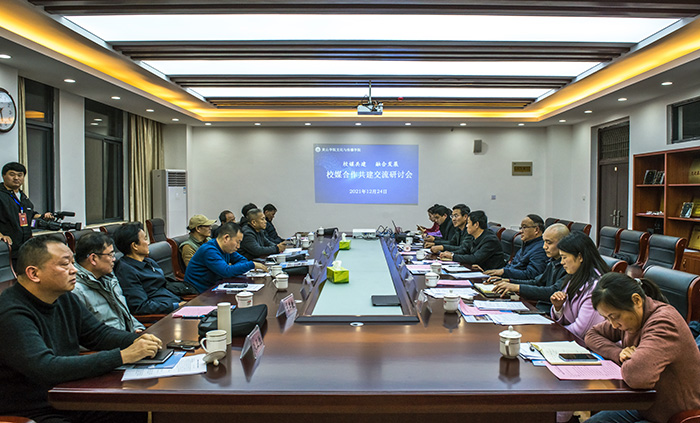 推进校媒共建,实施融合发展,12月24日下午,国家通讯社和安徽省、黄山市以及区县主流新闻媒体领导专家齐聚太阳成集团122ccvip,就公司新闻传媒专业与媒体融合发展、培养新时代应用型传媒人才座谈研讨。