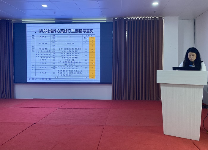 随后各专业教研室主任就本专业2022本科人才培养方案,分别从方案主要内容调整、专业培养特色、教学模块设计思路、课程设置逻辑关系等方面对方案进行了解读,使每位老师对方案制订原则、课程设置思路、专业发展方向等有了更加清晰的认识和理解。
