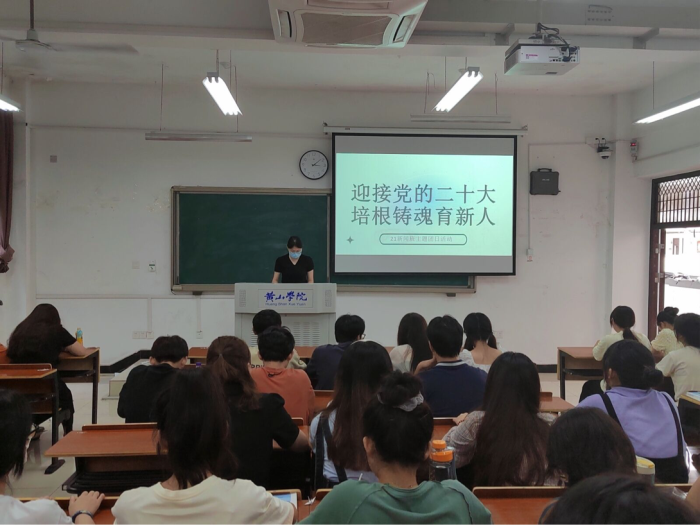 本次活动以班级为单位有序开展。8日上午,21播音班于文渊楼开展“迎接党的二十大,培根铸魂育新人”主题演讲活动来表达对老师的祝福;当天下午,21新闻班于文渊楼教室带领大家举办教师节以及优秀教师的知识宣讲班会,会上由团支书安琛琛向大家介绍了教师节的由来,再由小组代表上台分享国内外教师的优秀事迹,同学们分享了数十个优秀教师的感人事迹,发人深省,也令人动容;20戏文班于9日上午在文渊楼教室开展“感念师恩、努力学习、与党同心、跟党奋斗”专题学习会,该班通过学习习近平总书记在庆祝中国共产主义青年团成立100周年大会讲话精神和习近平给北京科技大学的老教授回信精神,感念师恩,与党同心,跟党奋斗。