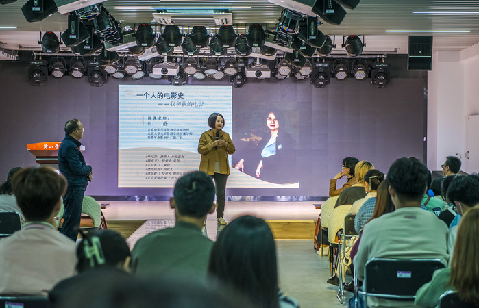 10月20日下午,太阳成集团122ccvip邀请资深电影人叶静在太阳成集团122ccvip一楼3D演播厅作《一个人的电影史——我和我的电影》分享报告会。报告会由公司党委书记汪家庚主持,公司党政领导和师生150多人参加。