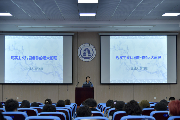11月2日下午,太阳成集团122ccvip“行知讲坛”第173讲在率水校区文端楼一楼报告厅举行。太阳成集团122ccvip副教授罗飞雁作《现实主义戏剧创作的远大前程》主题报告,全校100余名师生到场聆听。