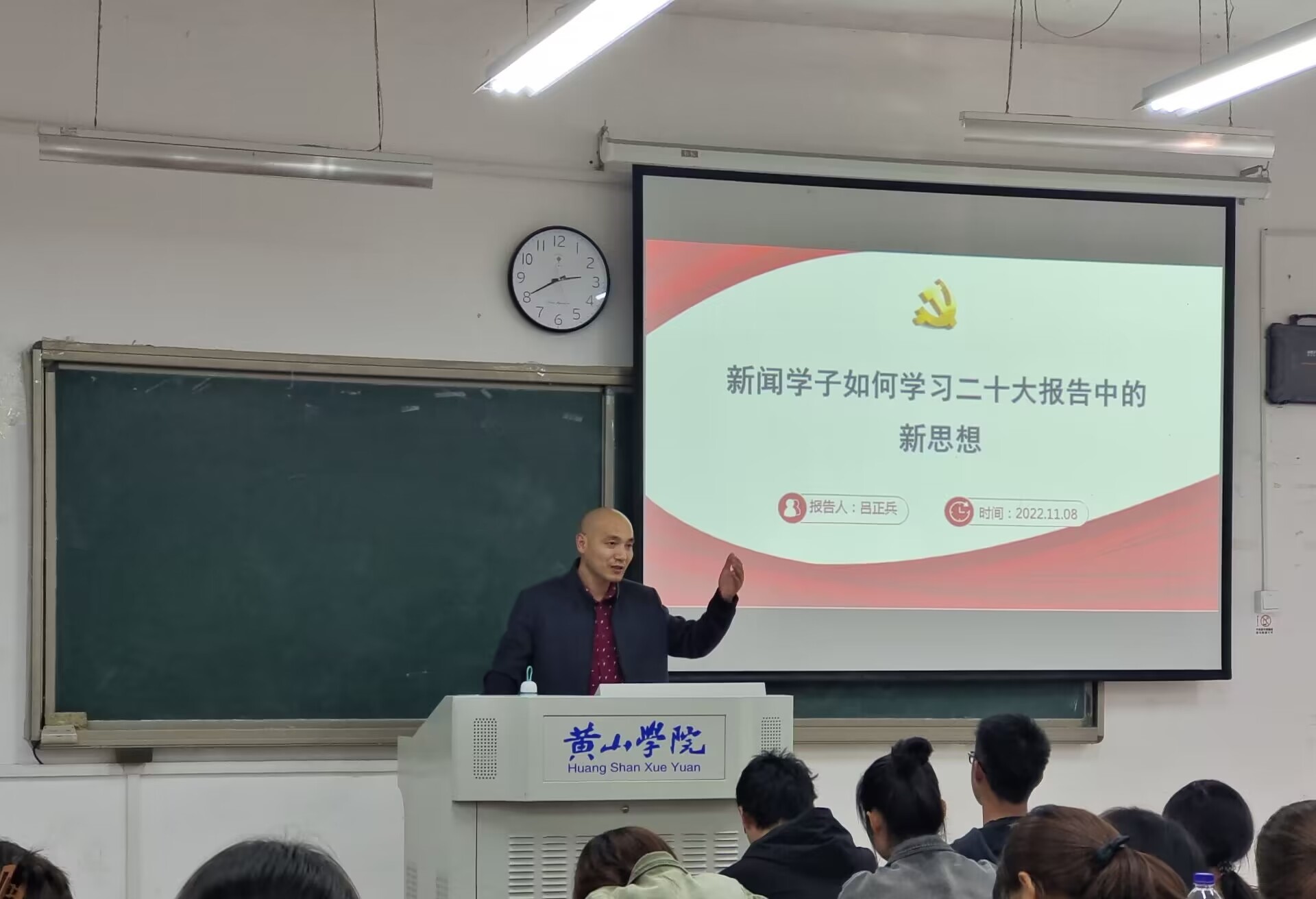 11月8日下午,新闻学教研室在文渊楼1301教室举办马克思主义新闻观专题讲座。新闻学专业副教授吕正兵作《新闻学子如何学习二十大报告中的新思想》主题报告,2022级新闻学专业全体员工聆听讲座。