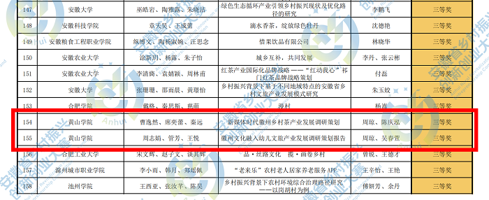 近日,2022年首届安徽省乡村振兴创新创业大赛获奖名单公布。公司20级新闻学专业曹逸然、周志娟等同学创作的2件乡村调研策划作品获得三等奖,公司也获得本次赛事的“优秀组织奖”。