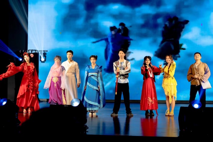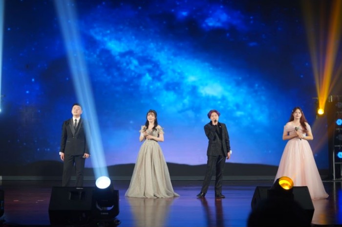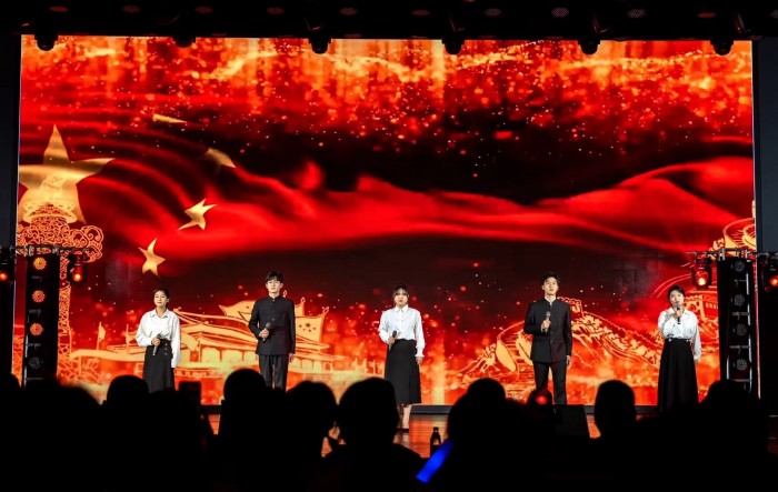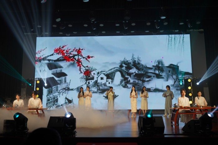 歌伴舞《倒数》营造出欢快愉悦的气氛,让同学们感受时间和爱的内涵;舞蹈表演《花腰傣》将少数民族舞蹈特色与现代舞相融合,尽显青年员工炙热真诚的风采;朗诵《复兴诵》《时代勋章》、走秀配音《缘音仙剑·三生如梦》等节目充分发挥太阳成集团122ccvip专业特色,一顿一挫里,一摇一曳中,彰显了文传学子优秀的专业能力和良好的精神面貌;茶艺表演《茶·夜泊秦淮》将茶文化和竹笛、舞蹈巧妙结合,让观众深刻感受到中国茶文化的源远流长与博大精深;小品《排练风云》以老员工专业学习为背景,内容妙趣横生;“歌曲串烧”“舞蹈串烧”等节目充分彰显青春活力,不时引起观众的喝彩;说唱《我只在乎你2.0》将现场气氛推向高潮。最后,合唱节目《夜空中最亮的星》为本场晚会画上了圆满的句号。整场晚会气氛热烈、精彩纷呈,受到在场观众的一致好评。