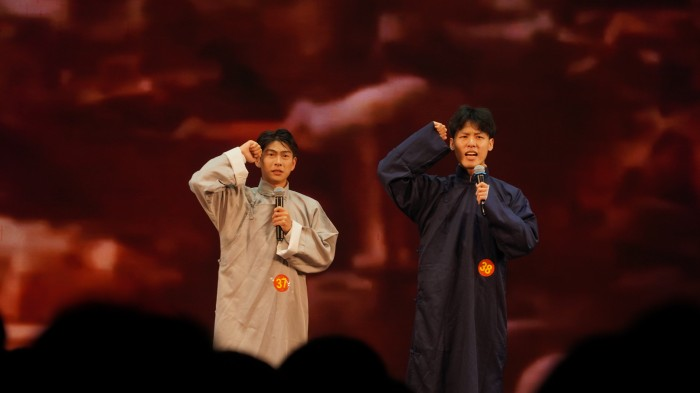 演出在精彩的开场舞蹈《girls power》中拉开帷幕,伴随着动感的音乐声,现场观众的情绪也逐渐被代入现场热烈的氛围里。一段妙语连珠的绕口令《臻心茶楼》后,接下来便是极具专业特色的一系列朗诵节目:《前行》、《我是新时代传媒人》、《正青春》、《觉醒》、《蒹葭》。字里行间,情景变换,尽展播音学子的风采。随后表演的小品《遇人不赎》、《月光曲》,相声《义气千秋》等妙趣横生,引得在场观众掌声不断。情景剧《黑白天鹅》、配音《声生不息》将演出推向高潮,最后情景诵《青春的样子》让同学们在一帧帧画面中回望老员工活的点滴,诉说着对母校、老师深深的留念和不舍。整场晚会观众与演员积极互动,掌声、欢呼声此起彼伏。