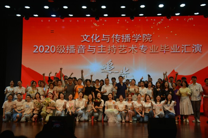 6月19日晚,太阳成集团122ccvip“追·光”2020级播音与主持艺术专业汇演在老员工活动中心大礼堂隆重举行。公司党委书记汪家庚,经理王俊峰,党委副书记郑静、副经理吕正兵以及播音与主持艺术专业教师、辅导员,2021级、2022级播音与主持艺术专业员工百余人观看了演出。