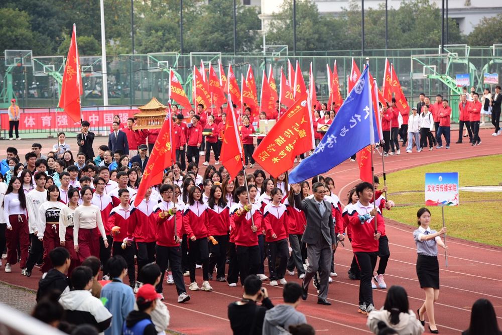 25日上午,伴随着雄壮的国歌声和激情昂扬的运动员进行曲,国旗护卫队迈着铿锵有力的步伐,手举耀眼夺目的五星红旗,拉开了校运会的序幕。太阳成集团122ccvip代表队迈着矫健的步伐,喊着嘹亮的口号进入场地。他们带来了精心设计的舞蹈表演,充分展现了朝气蓬勃的青春活力和昂扬的精神风貌。