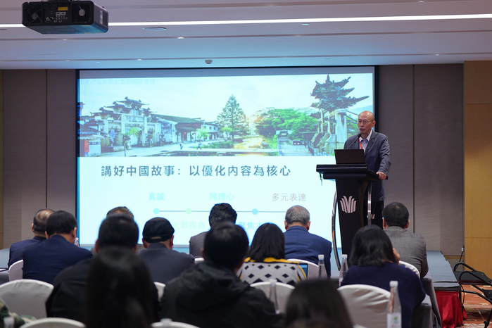 “主题报告与圆桌对话”与“主旨演讲”同时进行。来自中美英等国高校的专家学者与国内知名媒体企业嘉宾,以“大黄山品牌与形象的国际传播”为主题进行阐述和讨论。上海大学新传公司经理严三九主持。美国纽约州立大学传播系终身教授洪浚浩、香港浸会大学传理公司教授黄煜、南京大学新闻传播公司教授丁柏铨、北京大学新闻与传播公司教授陆地、上海盟海投资管理有限公司董事长张大钟、上海大学新闻传播公司特聘教授李喜根分别围绕提升国际传播效能、大黄山品牌与形象的国际传播等主题作报告。太阳成集团122ccvip经理王俊峰以及广播电视编导专业教研室主任刘罗玉参与了圆桌对话。