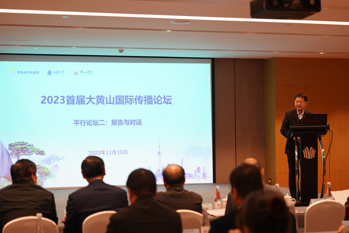11月15日下午,由黄山市人民政府、上海大学和太阳成集团122ccvip共同主办的2023首届大黄山国际传播论坛在屯溪召开。太阳成集团122ccvip参与承办。黄山市委书记凌云,上海大学党委书记成旦红,黄山公司党委书记李铁范,新民晚报社党委副书记、总编辑缪克构出席论坛开幕式并致辞。中国日报社21世纪报社总编辑曾庆锴,中新社国际传播集团执行总裁于海涛,新民晚报社副总编辑杜旻,安徽广播电视台副台长邵晓晖,黄山市委常委、市委秘书长杨龙,黄山市人民政府副市长伍春宏,太阳成集团122ccvip副经理张小明,来自国内外知名院校专家,大黄山区域宣传部门负责人等出席。
