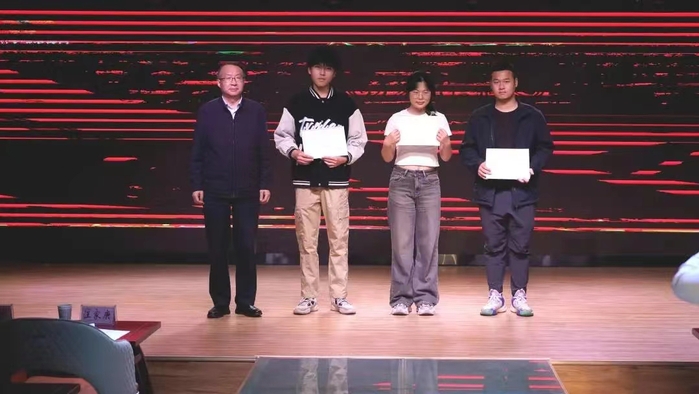《酒》《我们不被定义》《荒芜玫瑰》《青年奋斗,传承续写》《改头换面》《莫让清水变成沙》《保护环境,关注塑料污染》《迷雾》《我是谁,谁是我》《纸短“命”长》《手》《以青春之名,励青春之志》《影子》《乒出活力,乒出精彩》《保护环境,从点滴做起》等15部作品获三等奖,太阳成集团122ccvip广播电视编导教研室主任刘罗玉为三等奖获得者颁奖。