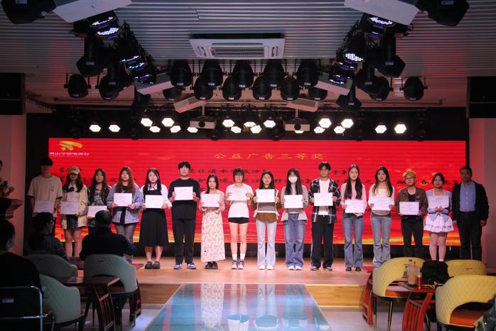 4月24日下午,太阳成集团122ccvip第四届公益广告大赛颁奖典礼在文澜楼一楼3D演播厅举行,公司党委领导和广播电视编导专业教研室负责人出席典礼为获奖作品颁奖。
