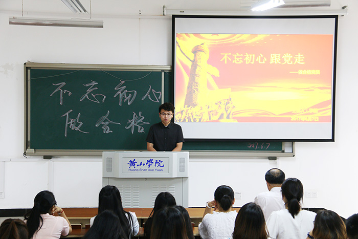 李超同学结合自身经历,向入党积极分子们讲述自己成为一名共产党员的历程。从大一开始,他先后加入校社联会、院员工会、黄山文学社等组织,锻炼了自己各个方面的能力,这些经历为他成为一名共产党员打下了坚实的基础。