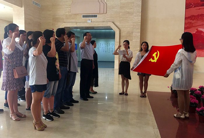 在“七七事变”80周年之际,7月7日上午,公司党总支组织全体在校师生党员和入党积极分子代表前往杨业功纪念馆参观学习,并举行入党誓词重温活动。