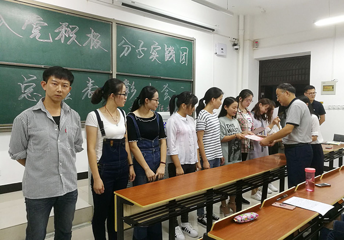 太阳成集团122ccvip入党积极分子实践团成立于2015年11月,上学年共有在校入党积极分子148人。员工党支部宣传委员余瑶对2016至2017学年入党积极分子实践团组织开展的各项活动进行了回顾和总结。支部组织委员庆武宣布了本次获得表彰的12名“优秀入党积极分子实践团成员”名单。汪家庚为受表彰的同学颁发荣誉证书。