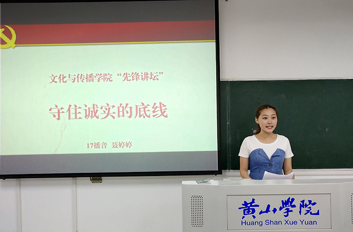 在中国共产党成立97周年之际,7月1日晚,公司党委在率水校区文渊楼109教室举行“先锋讲坛”第四讲报告会。2017级播音与主持艺术专业入党积极分子聂婷婷作题为《守住诚实的底线》的报告。公司党委书记汪家庚,公司党委委员、员工党支部组织委员庆武,员工党支部宣传委员余瑶及入党积极分子参加报告会。