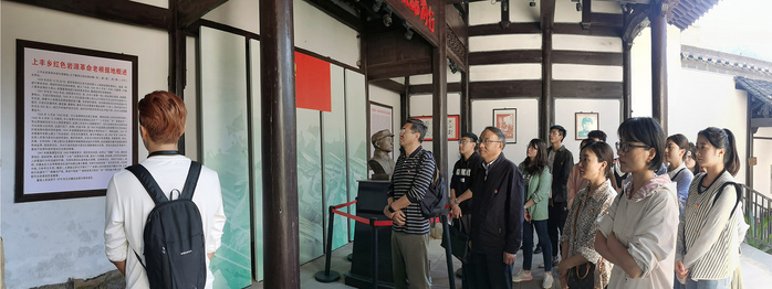 在岩源革命历史陈列馆,党员师生观看了由公司毕业生摄制的纪录片《丹心》,大家在一张张照片、一件件物品前驻足停留,播音专业5位党员老师为大家朗读红色岩源历史知识的展示资料,上了一次红色岩源主题“微党课”。师生们还对当时游击队创办的《黄山报》进行了仔细了解。活动现场,公司党委还向岩源革命历史陈列馆赠送了由公司师生拍摄制作的纪录片《红色岩源》,该片时长9分钟,获得了2022年安徽省微电影大赛微视频组(纪录片)一等奖。