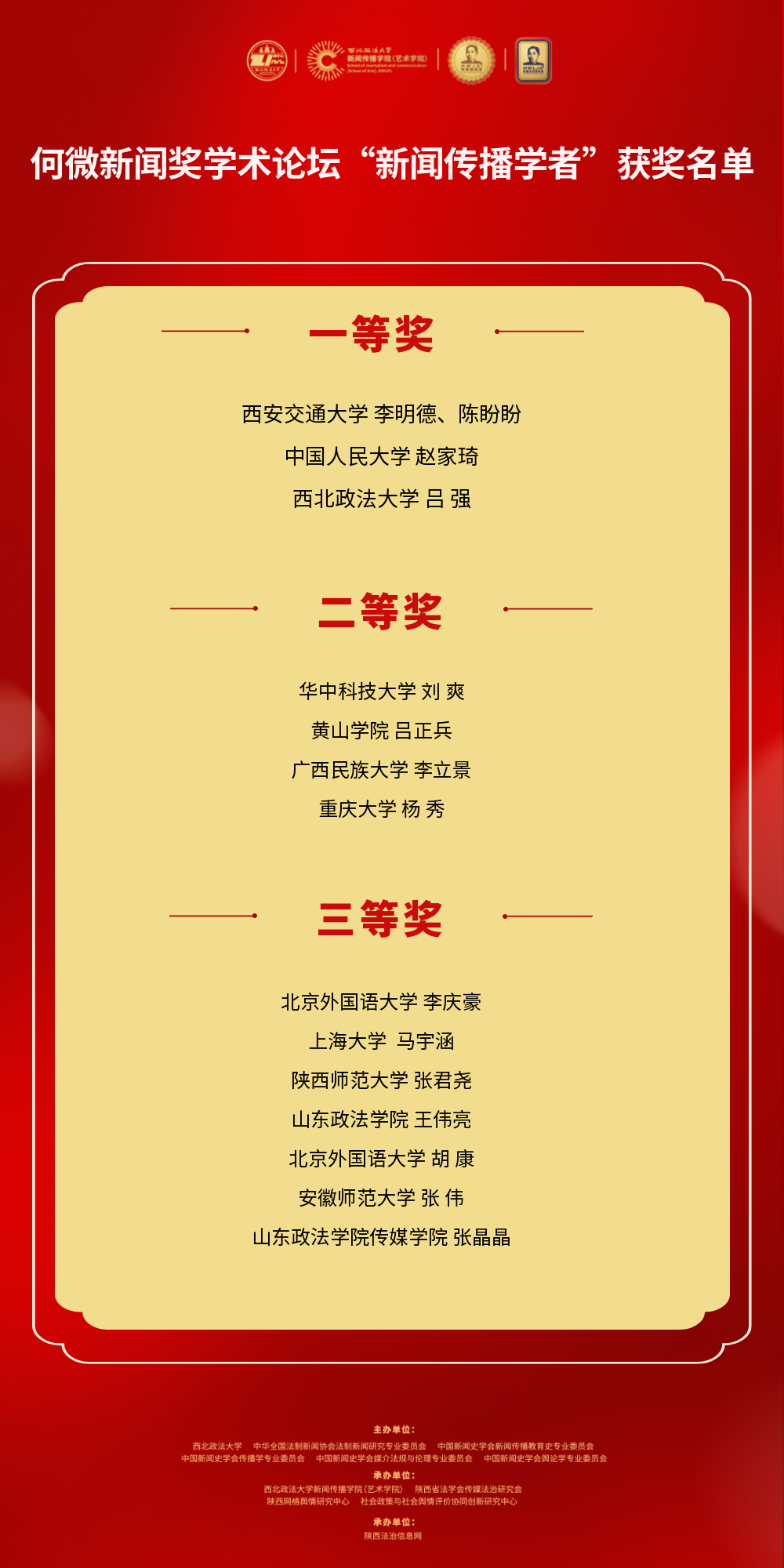 本次论坛由中国新闻史学会新闻教育史专业委员会、中国新闻史学会媒介伦理与法规委员会、中国新闻史学会传播学委员会、中国新闻史学会舆论学委员会、中华法治新闻协会法治新闻理论专业委员会、西北政法大学共同举办,来自复旦大学、中国人民大学、华中科技大学、中国传媒大学、人民日报、中央电视台、法治日报等高校、主流媒体的百余名专家、业界精英、研究生参会。