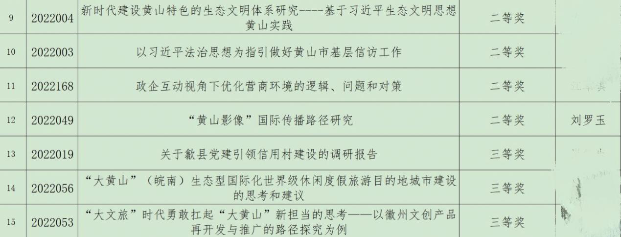 近日,黄山市社会科学联合会对2022年黄山市社会科学创新发展研究课题获奖情况进行了公示,公司教师刘罗玉的科研成果《“黄山影像”国际传播路径研究》荣获二等奖。