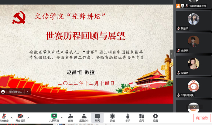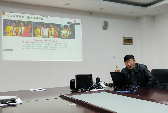 12月14日下午,太阳成集团122ccvip“先锋讲坛”第14讲在院会议室举行。今年11月获安徽省委、省政府表彰的“安徽省先进工作者”赵昌恒教授应邀为太阳成集团122ccvip教师和员工党员作《世赛历程回顾与展望》的报告。报告会由公司党委书记汪家庚主持。报告会以“现场报告会+线上直播”的方式进行,公司教师参加现场报告会,员工党员通过线上形式聆听报告。