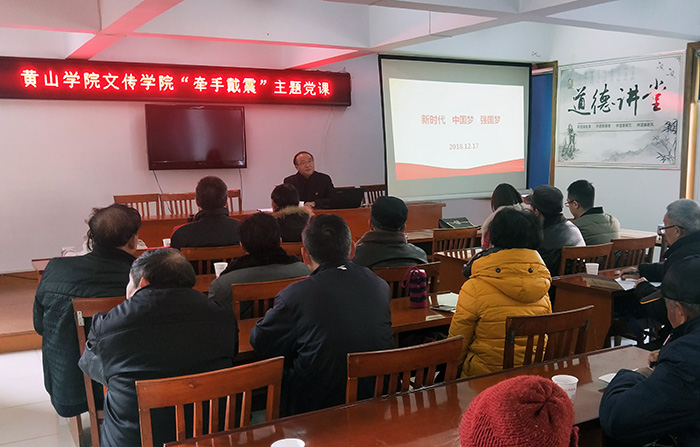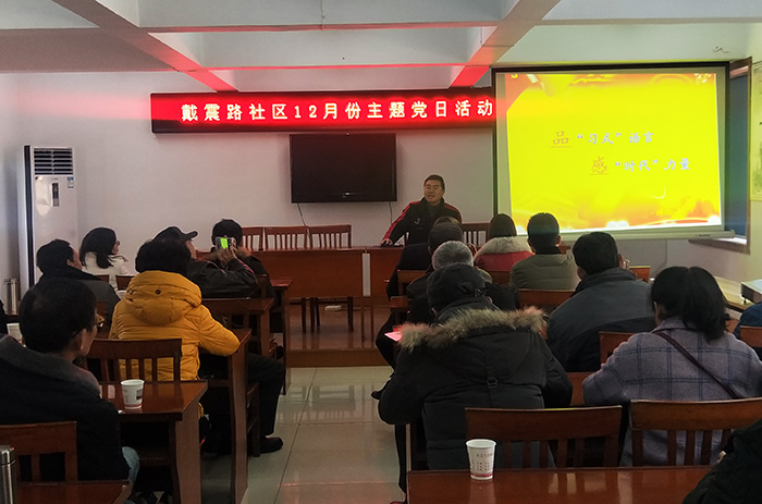 12月17日下午,公司党委书记汪家庚、副经理王俊峰与教工党员一行11人赴戴震路社区服务中心为社区党员送去一堂党课讲座。戴震路社区党委书记胡小燕主持讲座,40多名社区党员参加此次党日活动。