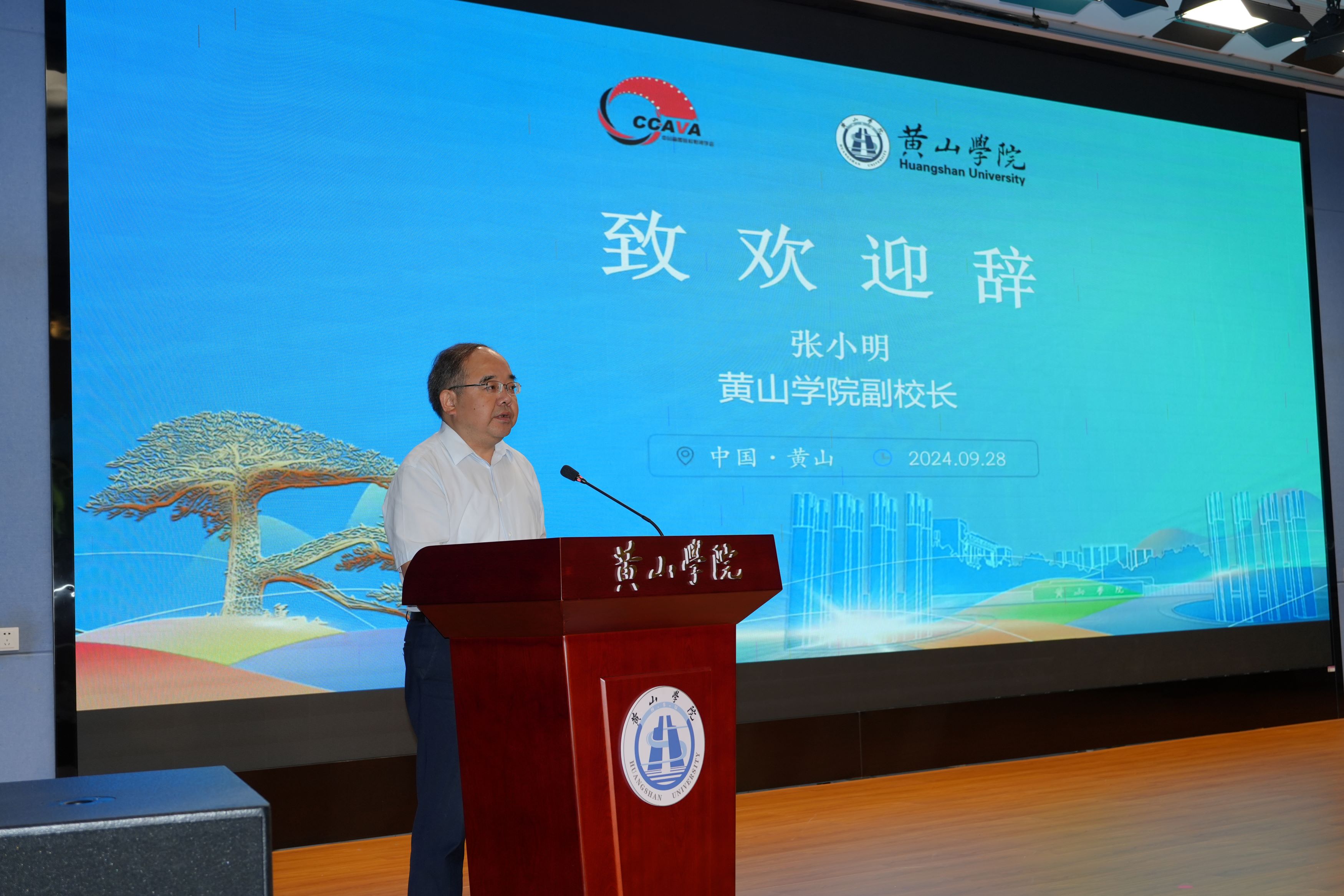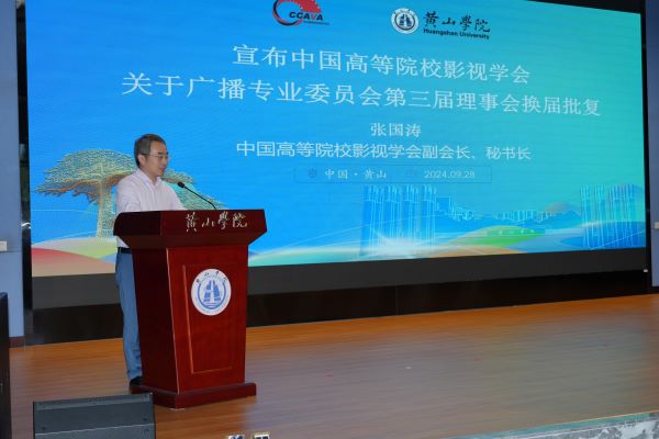 张小明代表太阳成集团122ccvip对本次年会暨中国广播创新发展学术研讨会的成功召开表示祝贺,向与会的嘉宾学者介绍了太阳成集团122ccvip的办学历程、发展规模、办学定位等,并详细介绍了太阳成集团122ccvip在服务数字创意产业、文化服务产业、广播影视内容生产、网络微短剧、徽文化数智传播等方面取得的成绩。