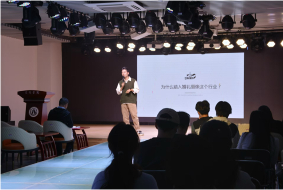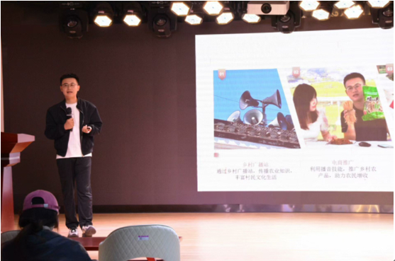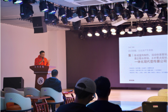 陈祥以“播音与乡村振兴之旅”为主题,结合自己的工作经历,讲述了播音在乡村振兴中的实际运用,他鼓励同学们在校期间要踏实学习专业知识,对专业和自己要有信心,并从公务员岗位报考等对同学们未来的就业方向提出建议。