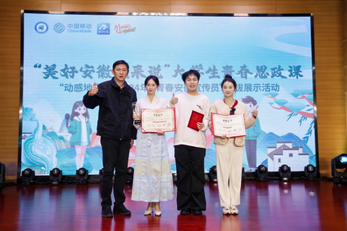 11月28日,由共青团安徽省委、安徽省学联、安徽日报主办、安徽报业融媒网络运营有限公司承办,中国移动安徽公司协办的“动感地带杯”2024年“青春安徽宣传员”选拔赛决赛在中国科学技术大学落下帷幕。公司获优秀组织奖,2022级播音与主持艺术专业万科含、2023级播音与主持艺术专业艾唐峻两名选手分别荣获“青春安徽宣传大使”“青春安徽宣传员”称号。