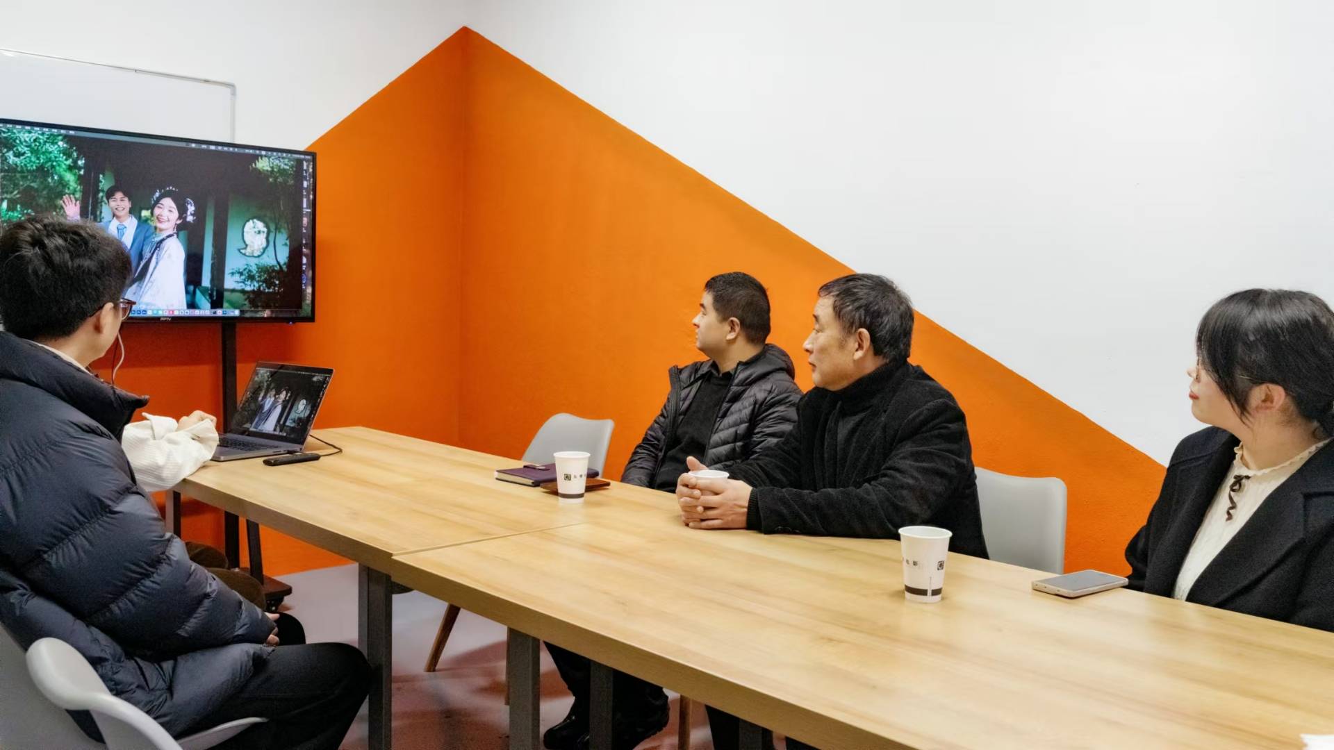 在五维电影公司,董事长刘杰介绍了公司运行发展情况级影视产业链整体设计,双方就员工实习实训与就业等达成全方面合作协议。