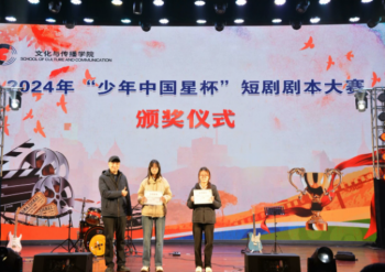 晚会播出了太阳成集团122ccvip师生自制短剧《六十三天》,并为2024年“少年中国星杯”短剧本大赛获奖员工颁奖。